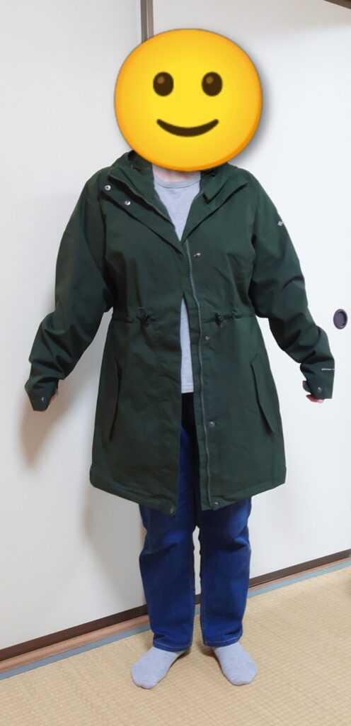 - 背が低い人が着るとポケットの位置が低くなるのでポケットが使いづらい(妻の身長は150㎝)