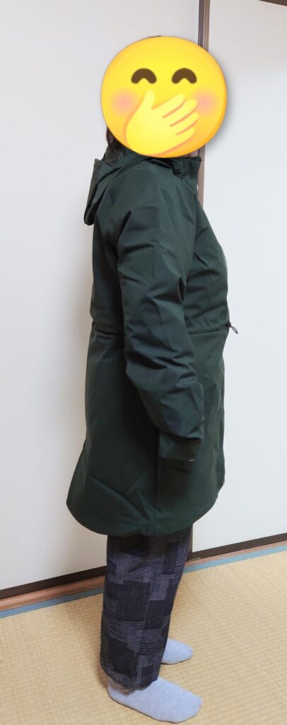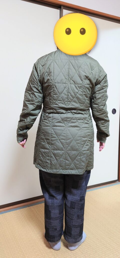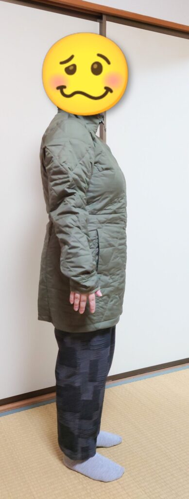 普通の冬用アウター(ダウンなど)に比べるとシルエットがすっきりしています。