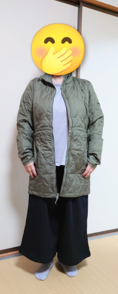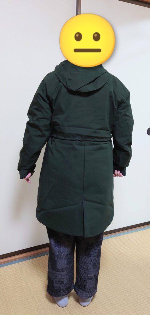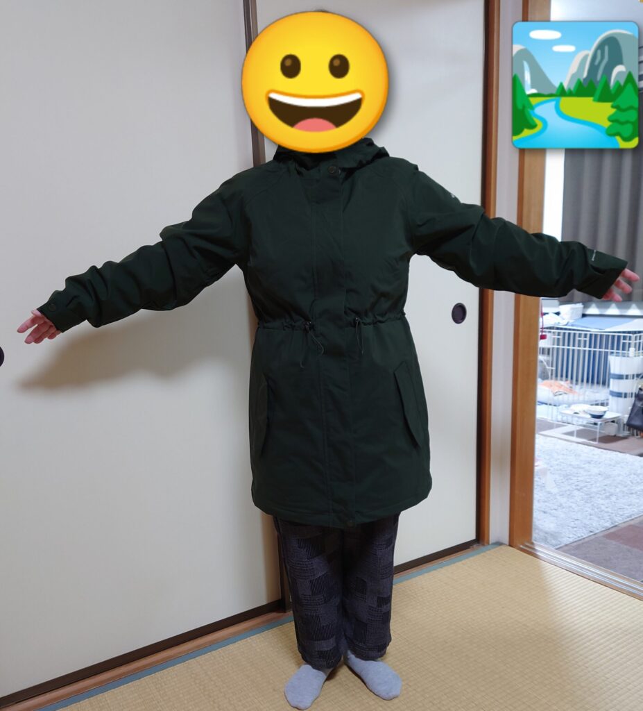 妻の実際に着てみた感想は、中のライナーを装着した状態だととにかくめちゃくちゃ暖かいとのことです。