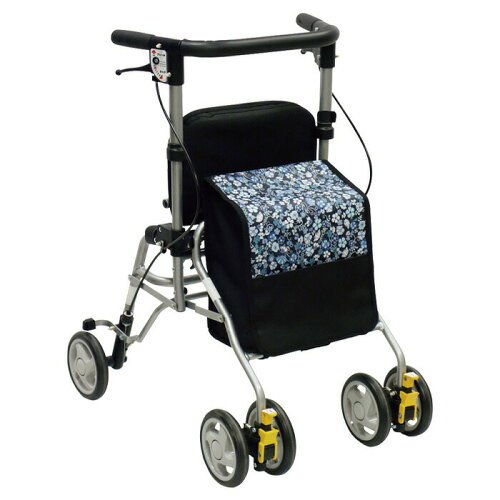 島製作所 シンフォニーSPスリム 花柄紺 歩行車 杖立て付 歩行器 高齢者 老人 介護用